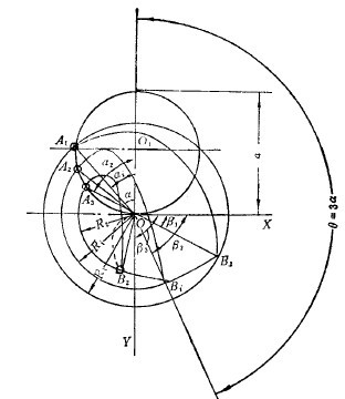 點(diǎn)Bi也在圓運(yùn)動軌跡上,它也遵從公式(2-2),于是照樣有極坐標(biāo)方程式