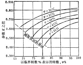 這兩個公式指出:最外層球的脫離角僅與轉(zhuǎn)速率有關(guān),而最內(nèi)層球的脫離角,即與轉(zhuǎn)速率又與裝球率(用K標(biāo)志)有關(guān)。根據(jù)上面講的情況可知,為了保證最內(nèi)層球也能處于拋落狀態(tài)(即所有球?qū)佣际菕伮涞模?,裝球率與轉(zhuǎn)速率必有一確定關(guān)系。而且這種關(guān)系又必有臨界點(diǎn),過了這種臨界點(diǎn),磨機(jī)的轉(zhuǎn)速不足以使暈內(nèi)層球作拋落,鋼球于是處于瀉落狀態(tài)。這里將用計(jì)算結(jié)果