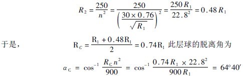 。最內(nèi)層球能作拋物落下的極限條件,由公式(2-26)可知為