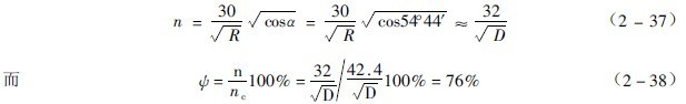 應(yīng)用公式(2-36)來決定轉(zhuǎn)速時,有兩種方法。首先用外層球有落下高度來定轉(zhuǎn)速。若取外層球的半徑即磨機(jī)的內(nèi)半徑,由公式(2-2)得到
